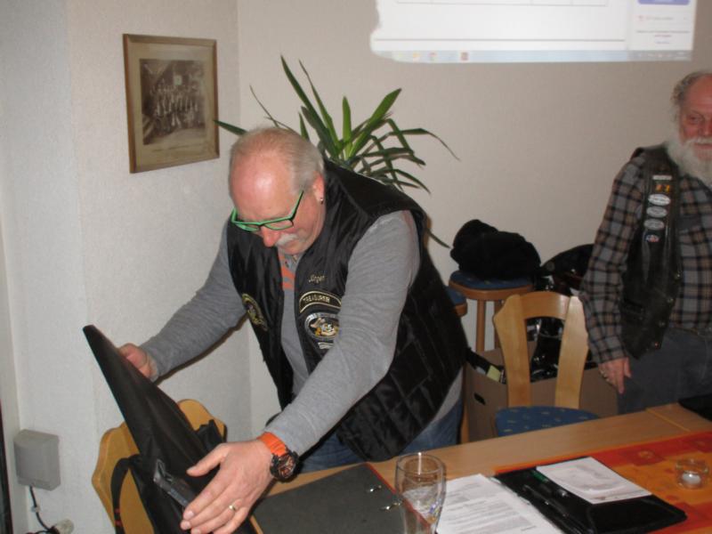 Danach konnten die Mitglieder den detaillierten Bericht des Treasures entgegen nehmen, wobei es sich Chief Heinz nicht nehmen ließ, Jürgen, als auch seine Gattin Angelika, für die jährliche, hervorragende Arbeit mit einem Geschenk zu danken. Diesen Ausführungen konnten sich die beiden Kassenprüfer im Rahmen ihres Prüfberichtes nur anschließen und empfahlen der Versammlung die Entlastung des Treasures, den weiteren Vorstands- sowie der Ausschussmitgliedern. Diesem Antrag stimmten die Mitglieder, bei Enthaltung der Betroffenen, einstimmig zu.