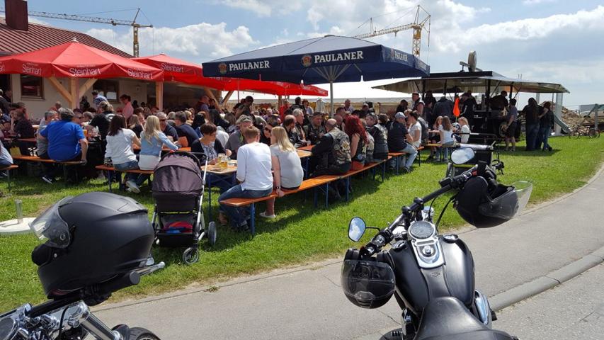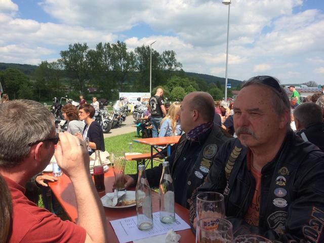 Es war ein sehr gemischtes Publikum vertreten, Mitglieder verschiedener Motorrad Clubs aus der näheren und weiteren Umgebung gaben sich ein Stelldichein. Nach ca. 1,5 stündigen Aufenthalt machten wir uns wieder auf die Rückfahrt über Pfronstetten durch die schönen Alblandschaften ging es nach Eglingen. Hier wurde mal angehalten, Zigarettenpause, Absitzen und das Kreuz wieder gerade rücken, weiter fuhren wir über Gomadingen, Gächingen dem Ausgangspunkt zu. Bei Louis angekommen verabschiedeten wir uns, einige fuhren nach Walddorf - Häslach zum Musikerfest um Nobbe und Horstmar zu besuchen, die anderen fuhren hoim...