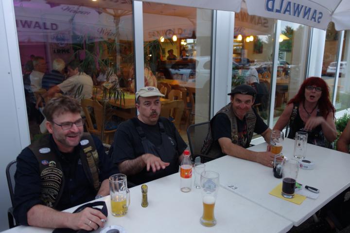 Aber der Reihe nach: Die Abfahrt fand um 10.30 statt. Bis dahin hatten einige von uns schon das zweite Frühstück beim RMC-Wirt eingenommen. Mit von der Partie waren das Schwaben Chapter aus Stuttgart und unsere Gäste aus Grevenbroich. Diese lernten bei Ihrer Anfahrt erst einmal das Rulaman Wetter kennen.