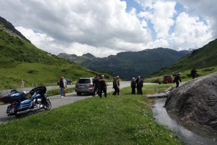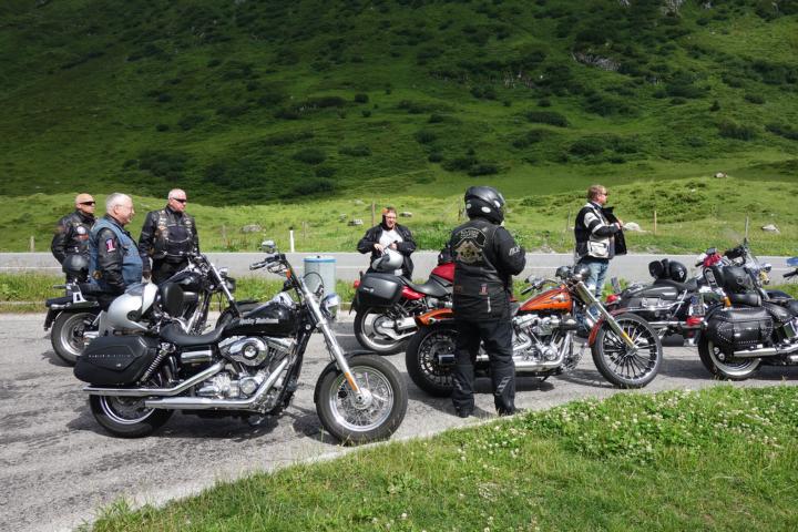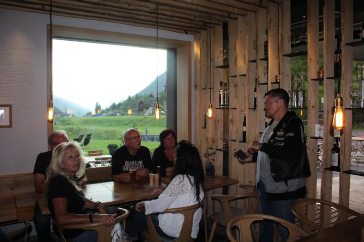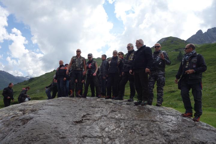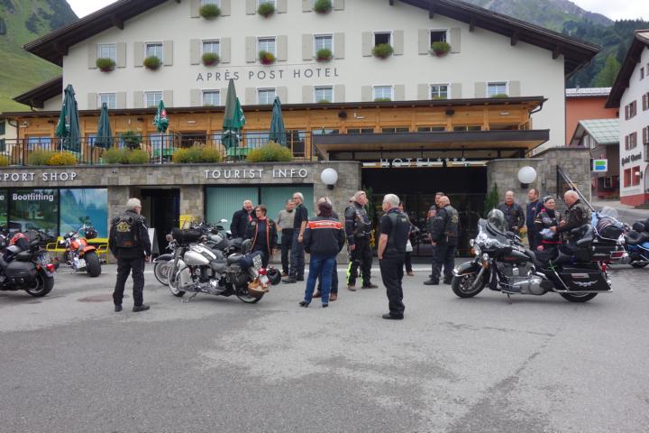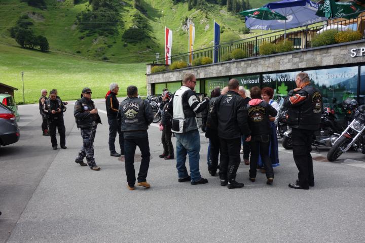 Am zweiten Tag war eine Ausfahrt mit dem Montfort-Chapter ausgemacht bei der auch Gäste aus Stuben teilnahmen. Der Tour-Guide für diese Fahrt war Franz-Josef. Er führte uns über trockene Straßen über das Hahntennjoch, Namlostal, Lechtal wieder zurück nach Stuben, wo bereits Thomas,Chef der Apres-Post veranlasst hatte, dass genügend Getränke für die Teilnehmer breitstanden. Nach einem Gruppenbild mit allen Teilnehmern verabschiedeten sich die Member des Montfort, aber nicht ohne Versprechen, dass sie uns "draußen" auch mal besuchen kommen.