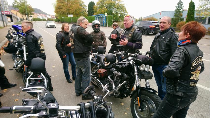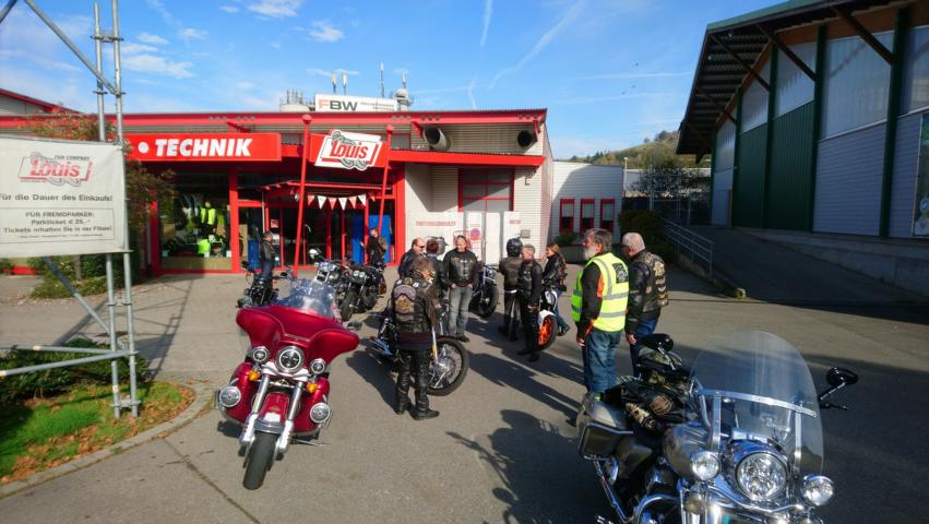 Zur letzten großen Ausfahrt dieses Jahr (sicher weiss man es ja nie) hatten sich beim Motorrad Louis in Reutlingen 14 Moppeds und 17 Member eingefunden. In Anbetracht der Jahreszeit ist das echt rekordverdächtig. Man muss eben auch die letzten Sonnentrahlen und das warme Oktoberwetter nutzen bevor die Harley winterfest eingemottet wird.