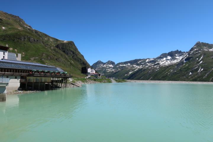 Unterwegs begegneten uns noch eine größere Anzahl klassischer Automobile. Zeitgleich waren am Arlberg die „Arlberg Classic“. Nicht jeder Klassiker kam mit den hohen Temperaturen zurecht und musste vor unserem Hotel eine Zwangspause einlegen.