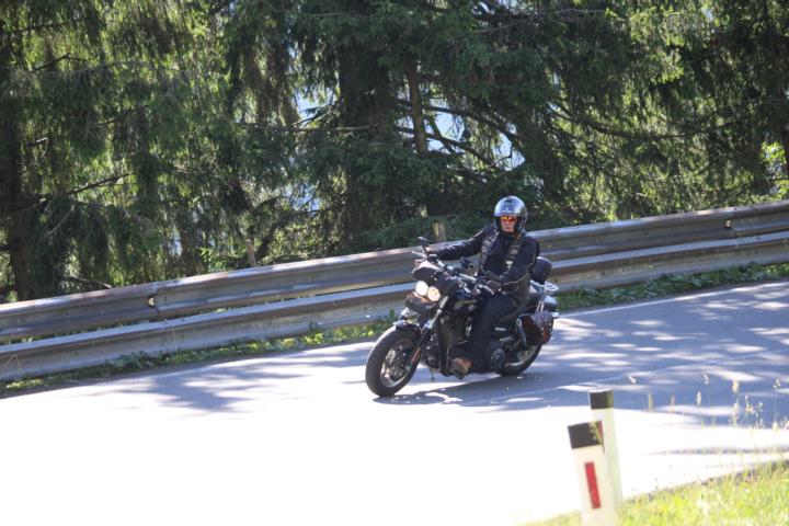 Wohlbehalten angekommen, erwartete uns ein kühles Bier. Das war bei der Hitze auch dringend nötig. Beim Abendessen schlug uns Franz Josef, ein einheimischer Wirt und Organisator der Samstagstour, zwei Alternativen für eine Ausfahrt vor. Es wurde basisdemokratisch abgestimmt und die Mehrheit entschied sich für die (härtere) Tour durch die Alpen. Den Freitag ließen wir gemütlich bei einem guten Abendessen und netten Gesprächen ausklingen.