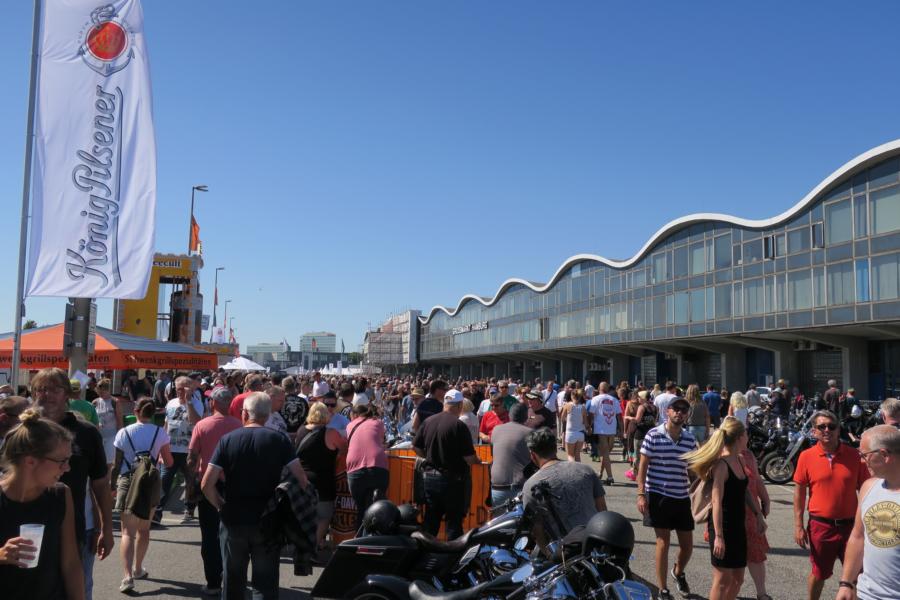 Ansonsten war fast alles wie immer auf dem Großmarktgelände; die HD Händler aus Hamburg Süd, Hamburg Nord, Lübeck, Breitenfelde und Hannover, German HOG Charity, waren ebenso wir alle Customizer und Veredler, freie Händler (insgesamt 100 Händler), Versorgungsstände aller Art über Flüssiges bis Handfestes in hoher Anzahl vorhanden, um wie der Presse am Sonntag, dem Hamburger Abendblatt entnommen werden konnte, den geschätzten 600.000 Besucher und ca. 50.000 Harleys und deren Fahrer/in, gerecht zu werden. Auffällig war das verschiedene HD Händler, sonst stets vor Ort, offensichtlich durch die Wetterkapriolen der letzten drei Jahre, in diesem Jahr nicht dabei waren.