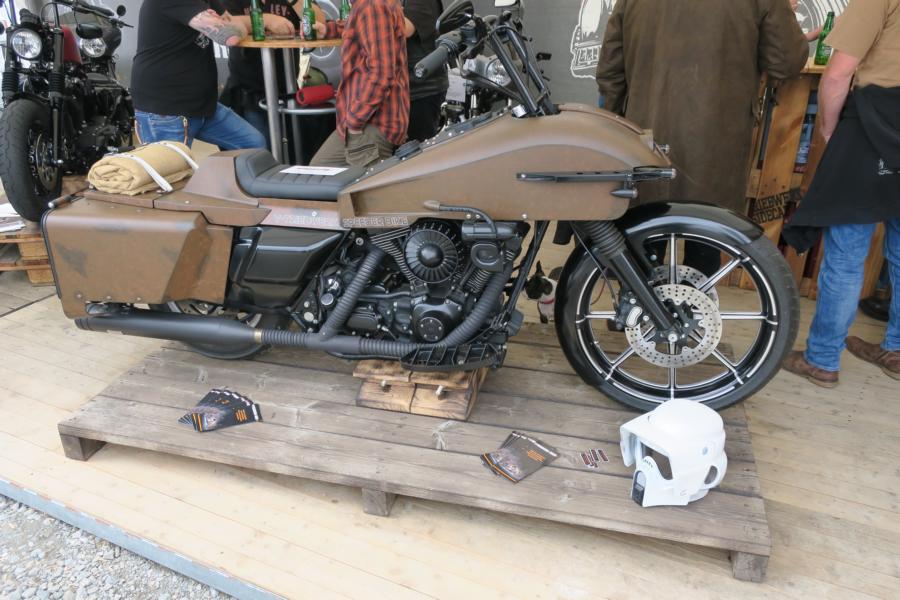 Aber in Willingen bzw. im Hotel angekommen, durfte man feststellen, dass der harte Kern wie immer vor Ort weilte. Also raus auf das Eventgelände und die trockene Phase genutzt um die geplanten Einkäufe zzgl. des Eventpins mit einem Los für den Gewinn einer neuen HD Sportster Iron, zügig zu erledigen. Auf dem Gelände waren die HD Händler Motomax mit ihren Standorten Hagen, Remscheid, Bochum, HD Bielefeld mit den Standorten Osnabrück und D-dorf, HD Kassel, sowie HD Pfeifer aus Kamen vertreten. Weitere ca. 100 Händler über Kess, Penzl, Jekyll & Hyde, weitere Customizer, sowie Händler für die HD, den HD Fahrer bzw. Fahrerin, als auch gegen Hunger und Durst, rundeten das Angebot ab.