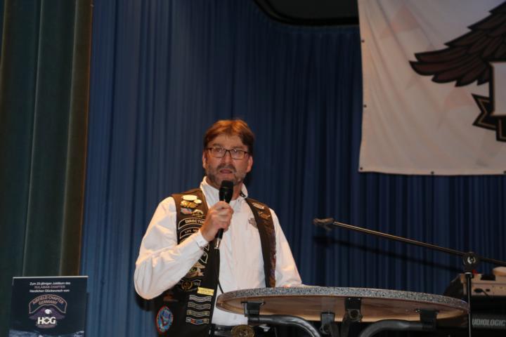Am frühen Abend begann der offizielle Teil der Veranstaltung. Zuerst hielt unser Vorstand Diddi eine Rede bei dem er sich bei allen bedankte, die gekommen waren mit uns zu feiern und denjenigen Helfern, die viele Stunden investiert hatten, das Fest zu etwas Besonderem zu machen. Es folgte die Vorstellung der anwesenden Chapter und Teilnehmer: