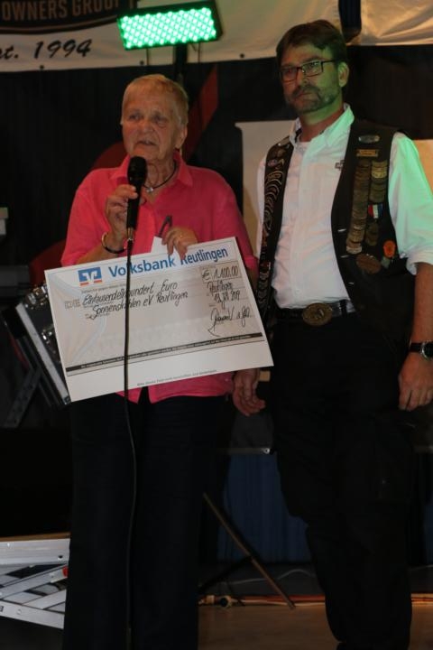 Anstelle von Gastgeschenken wollten wir den Förderverein Sonnenstrahlen unterstützen. Dieser Förderverein wendet sich an Kinder und Jugendliche, deren Vater, Mutter oder engste Angehörige an Krebs oder sonst schwer erkrankt sind. Frau Stub, die Vorsitzende des Vereins hielt eine bewegende Rede und bedankte sich für den symbolischen Scheck, der ihr auf der Bühne überreicht wurde.