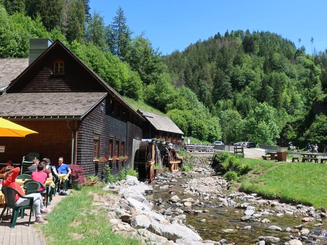 An der Hexenlochmühle angekommen bewährte es sich, dass wir vor der Abfahrt reserviert hatten. Sonst wäre es in Corona-Zeiten eng geworden mit den Tischen.