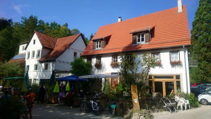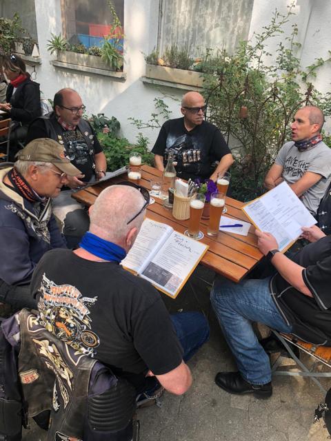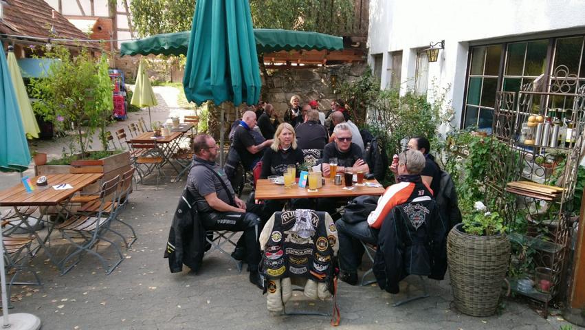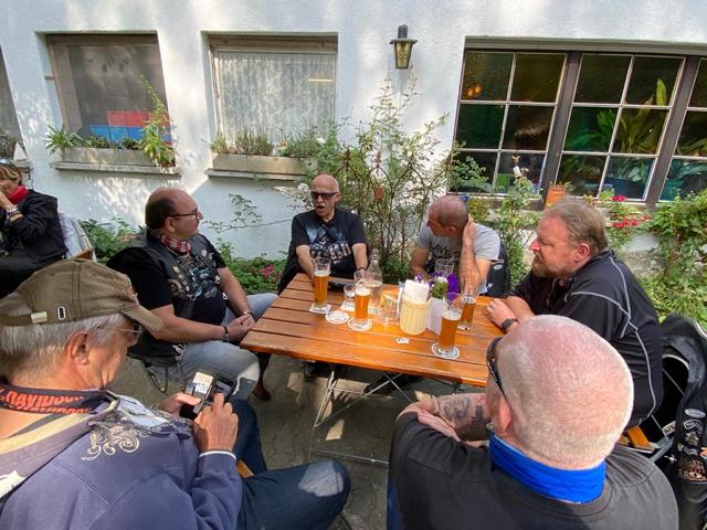 Die Strecke hatte Marko, unser Road Captain gut gewählt. Sie führte über das Lenninger Tal, Wiesensteig, Gingen an der Fils, Rechberg nach Adelberg. Dort angekommen, machten wir eine Pause und ließen uns das Essen schmecken.