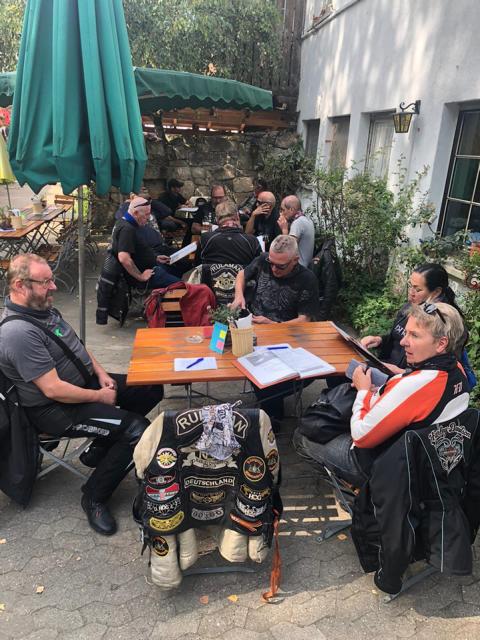 Wir nutzen die Gelegenheit, bei bestem Wetter eine Spätsommertour zur Zachersmühle nach Adelberg zu unternehmen. Wir, das sind 15 Motorräder, 17 Member und 5 Gäste.