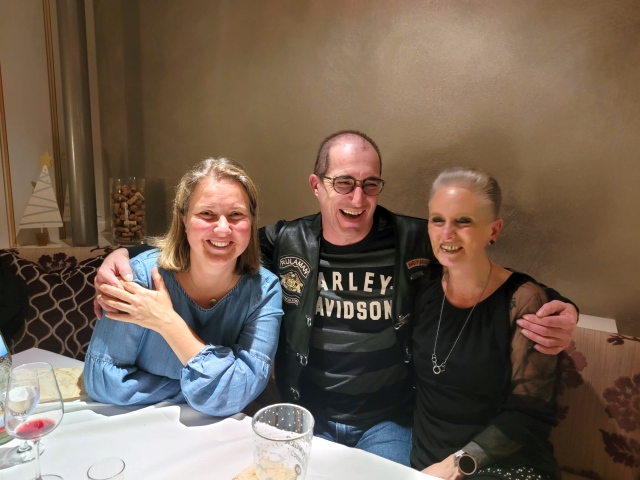 Unser Vice Roland hatte auch dieses Jahr wieder alles bestens organisiert: den Glühweinempfang im Außenbereich, ein gutes Essen und vor allem den schwäbischen Kabarettisten „Linkmichel“.