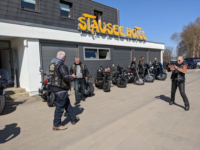 Im Stauseehotel angekommen, trudelten nach und nach die Member ein, die die Tour nicht mitfuhren. Unser Vice Roland hatte über 30 Plätze reserviert und die brauchten wir auch alle.