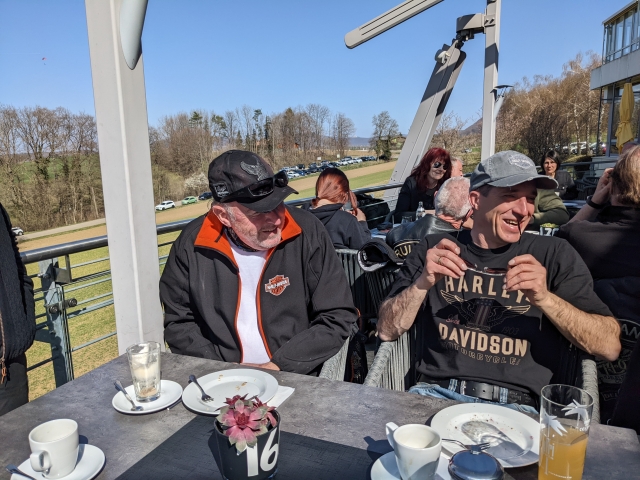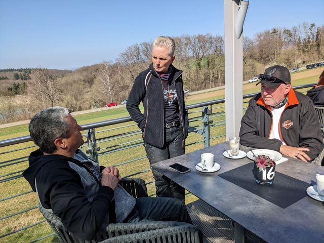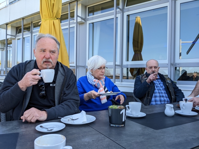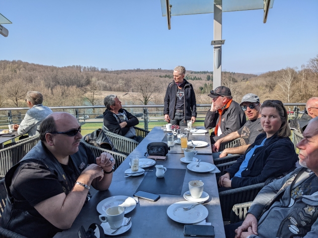 Bei Kaffee und Kuchen feierten wir den 28. Geburtstag von Rulaman. Es gab viel zu erzählen und auch Josef ein langjähriges Rulaman-Member und Wirt des Stausee-Hotels ließ es sich nicht nehmen trotz der brechend vollen Aussichtsterasse bei uns zu sitzen und etwas zu klönen.