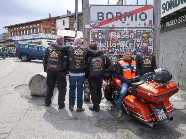Am Freitag nahmen wir als ersten Pass das Stilfserjoch mit. Kurz nach den ersten Steilkurven stand der Verkehr, da sich ein Motorradunfall ereignet hatte. Bei der Fahrt auf das Stilfserjoch überholt man viele Radfahrer und muss hoffen, dass die Autofahrer mitdenken und anhalten, wenn man wieder mal in einer Kehre den kompletten Kurvenradius benötigt.