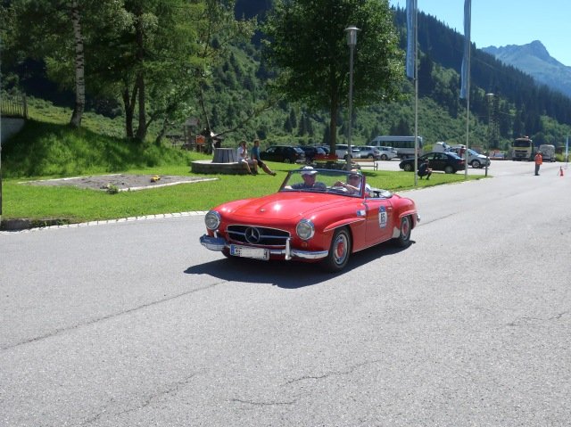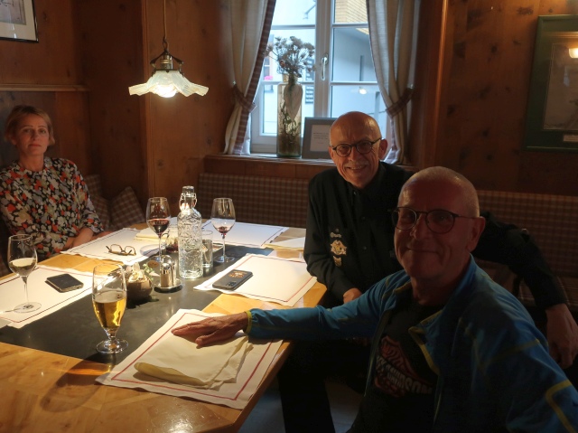 Über Galltür ging es wieder zurück nach Stuben, wo wir von unserem Wirt Thomas mit Bier und Aperol Spritz empfangen wurden. Besonders sehenswert: direkt am Hotel fuhren viele Oldtimer von Teilnehmern der „Arlberg Classic“ vorbei, die in der Nähe ihre Zeitprüfung ablegten.