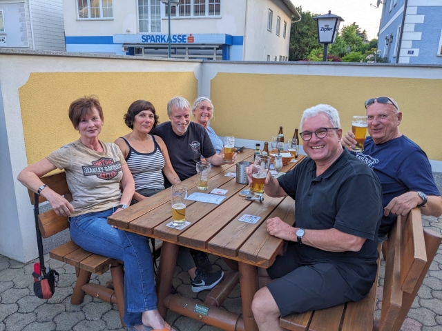 Martina und ich beschlossen am Montag über Land nach Hause zu fahren. Bei fantastischem Wetter und sehr moderaten Temperaturen ging es dann über sehr kurvenreiche Straßen über einen Bergpass. Kurz nach Augsburg kamen wir in ein richtiges Gewitter. Die Fahrzeuge fuhren Schritt-Tempo und man konnte die Rücklichter nicht mehr erkennen, so stark regnete es. 20 km weiter war die Straße wieder trocken. Etwas durchnässt ging dann auch für mich die Tour zu Ende.