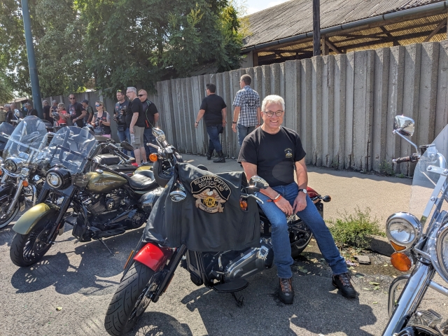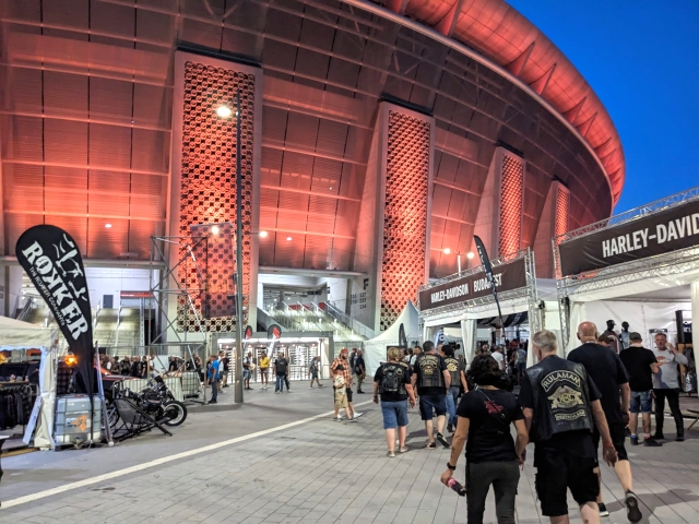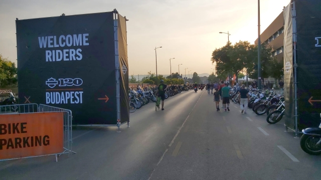 Auf der Weiterfahrt nach Budapest hielten wir noch in der Partnerstadt von Bad Urach, zu der Horst gute Kontakte hat und besuchten zwei Kindergärten. Die Augen der Kinder leuchteten, als wir sie aufs Mopped sitzen ließen. Weiter gings nach Budapest, wo wir der freundliche Harley-Händler bei Martinas Maschine die Kupplung auswechselte, bevor diese sich komplett verabschiedete konnte. Bei ihm war die Hölle los aber vielleicht war es der Frauenbonus, dass sich der Service ohne große Wartezeiten der Maschine annahm. Nachdem wir das Quartier bezogen hatten, ging es zum Eventgelände.