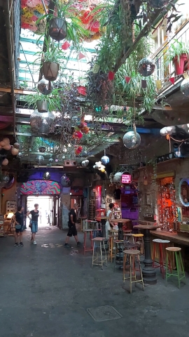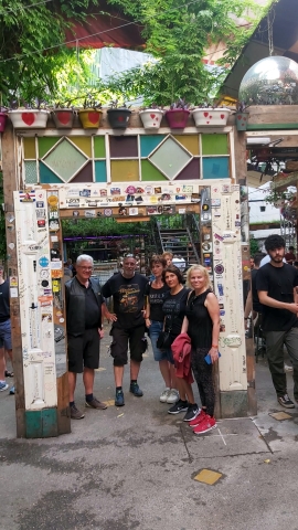 Am Freitag führten wir mit dem Hop-On Bus eine Stadtbesichtigung durch. Es war nur noch heiß und etwas Kühlung brachte die Busfahrt im offenen Doppeldecker-Bus und viel kühles Bier. Unser Ex-Member Joel hatte sich kurzfristig entschlossen, ebenfalls zum HD-Event zu fahren. Nach dem wir uns getroffen hatten bummelten wir noch durch die Markthalle und danach ging es in die Ruin-Bars. Thomas hatte sich schon im Vorfeld schlau gemacht. Das Haus, das die Ruin-Bars beinhaltet sollte abgerissen werden wurde aber von der Szene okkupiert, die das in eine mittlerweile sehr bekannte und sehenswerte Location verwandelte.