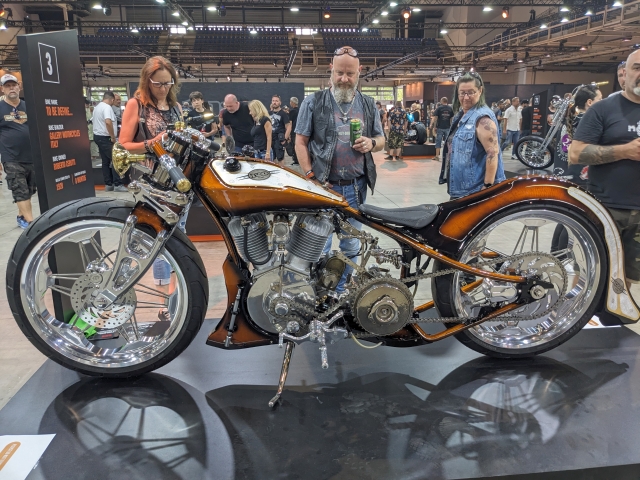 Am Samstag warte schon die Parade auf mich. Meine anderen Mitfahrer hatten darauf keine Lust. Ich war voller Erwartung auf die Parade, die durch die Stadt führen sollte. Aber irgendetwas ging schief. Aufgrund der Verkehrsregelung durch die Polizei, die erst einmal die Busse an der Kreuzung durchließ, schien ich in in einer Gruppe mitzufahren, die nicht wusste, wo die Strecke verlief. (meine Interpretation). Nach ca. 45 Minuten war ich dann wieder auf dem Eventgelände und war irgendwo durch die Stadt gekarrt, jedoch nicht auf der geplanten Parade-Strecke. Ich traf meine anderen Mitfahrer in der Stadt wieder und nach einem Besuch des Hardrock-Cafe und ein paar Bier zum runterspülen des Frusts war die Welt wieder in Ordnung. Beim erneuen Besuch des Eventgeländes schauten wir noch in der Ausstellungshalle von HD vorbei, in der sowohl die aktuellen, als auch die fantastischen Bikes der Customizer-Szene ausgestellt wurden. Karen und Bill Davidson, Urenkelin und Urenkel von William A. Davidson kürten dann auf der Bühne die besten Umbauten und deren Erbauer.