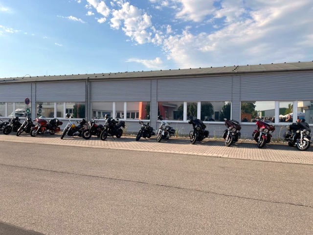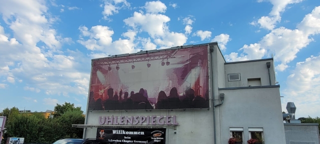 Über verschlungene Straßen, durch kleine Ortschaften und dankbar für kühlende Walddurchfahrten bei Mitte 30 grad Außentemperatur, erreichten wir nach ca 80 Km den Uhlenspiegel in Rutesheim, der Party-Location.Eine Punktlandung wie sich herausstellte, weil sich nur wenige Minuten nach Ankunft die Schleusen des Himmels öffneten, es ausgiebig regnete und etwas für kurzfristige Abkühlung gesorgt wurde.