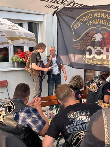 Beim offiziellen Teil wurden die Vertreter der angereisten Chapter vom Gastgeber begrüßt und die fürs "Olgäle" erbetenen Spenden überreicht. Nach dem offiziellen Teile legte die Band los und leitete den gemütlichen Abend ein.