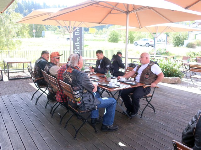 Am 03. Oktober fand zum Saisonabschluss wie jedes Jahr unser Hufeisenwerfen auf der Hutzelranch statt. Aber vorher gab es noch eine Ausfahrt bei sommerlichen Temperaturen über die Schwäbische Alb. Diese wurde von unserem Road-Captain Nobs geführt. Er hatte sich bei der Planung ins Zeug gelegt und eine schöne, wenig befahrene Strecke herausgesucht.Es machte so richtig Spaß die Harley durch die Kurven zu treiben. Unterwegs legten wir noch eine kurze Pause in einer Bäckerei ein, um uns für die nachfolgende Herausforderung zu stärken.