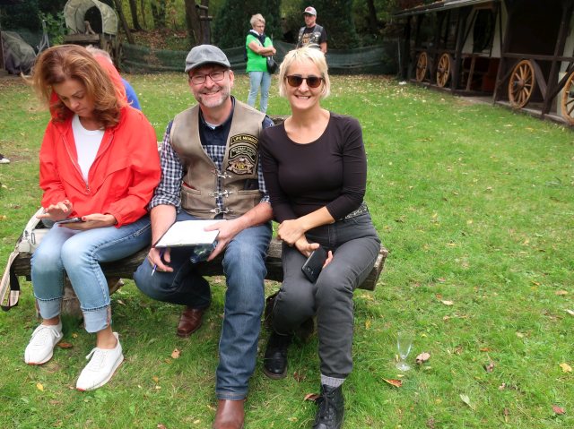 Auf der Hutzelranch angekommen, wurden die Moppeds in Reih und Glied aufgestellt und noch ein Gruppenfoto geschossen. Und wie jedes Jahr wurden wir wieder freundlich vom RCC begrüßt. Roland übergab im Namen von Rulaman eine Gedenktafel, die die 25 jährige Freundschaft von Rulaman zum RCC hervorhob.