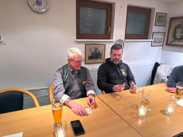 Unser „Event-Manger“ Joe hatte alles bestens organisiert. Würfelbecher, Würfel und Schreibzeug lag bereit. Nach einer kurzen Ansprache von Roland wurden Gruppen gebildet und Joe erklärte, welche Spiele gespielt werden.