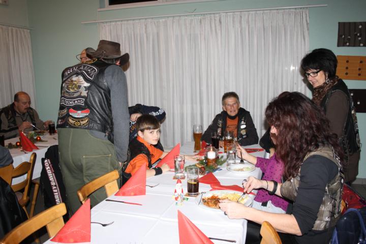 Nachdem Grudrun und Heinz die Weihnachtsfrau bzw. -mann für die Kinder gespielt hatten, hielt Heinz eine kurze Rede „zur Lage der Nation“. Besonders erwähnt wurde Pfingsten 2014. Zu diesem Termin feiern wir unser 20-jähriges Jubiläum zum Bestehen des Rulaman-Chapters. Bis dahin wird es noch viel Arbeit geben und Heinz hatte uns eine Vorstellung davon gegeben, was wir machen wollen.
