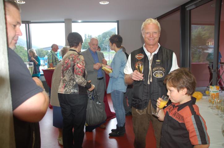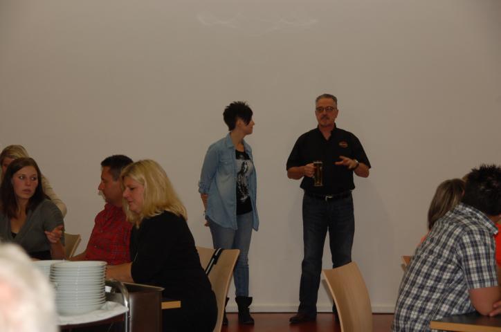 Nach einem lockeren Sektempfang ging es dann zum offiziellen Dinner. Die Speisen vom Buffet waren reichlich und lecker. Der Vice hatte auch seinen Sohn vorbei. Der war ganz scharf darauf, die vielen Fahrzeuge der Feuerwehr anzusehen und auch mal in einem zu sitzen. Auch Frank interessierte sich dafür. Bei einem Bierchen kam ich mit einem Mitglied der Feuerwehr ins Gespräch und er erzählte mir höchst interessante Details rund um Einsatzwagen, Rettungsleitern usw. Jetzt weiss ich, wo unter anderem meine Steuern hinfließen. So ein Einsatzfahrzeug kostet richtig viel Geld.