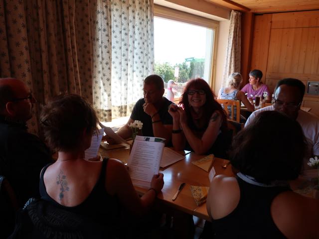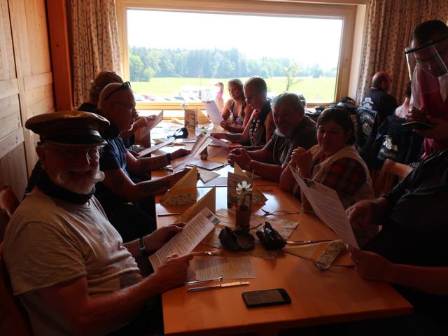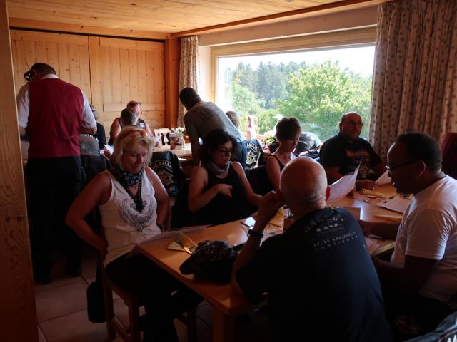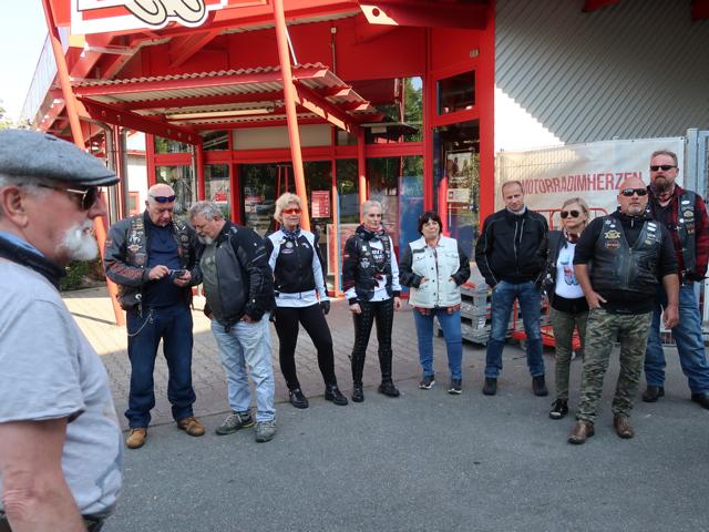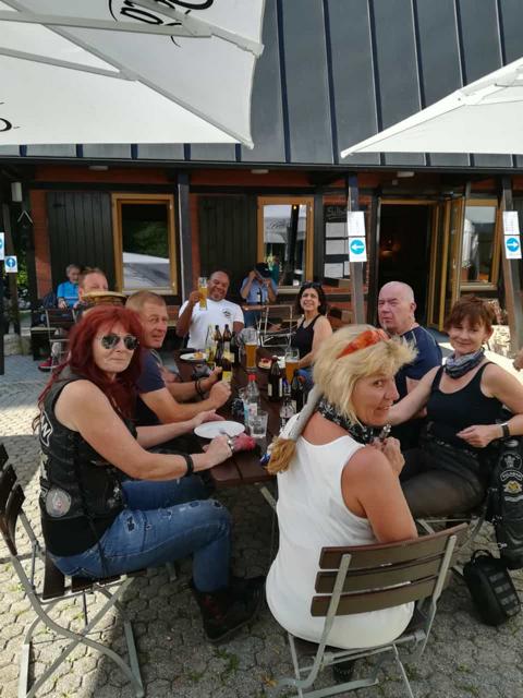 Nahe bei unserem Restaurant, bei dem wir zu Mittag aßen, streikte das Mopped von Bine. Erst ging es nicht mehr aus, dann nicht mehr an. Nach dem Mittagessen und dem obligatorischen Gruppenfoto ging es dann wieder Richtung Heimat. Auch das Mopped von Bine hatte sich besonnen zickte nicht weiter herum.