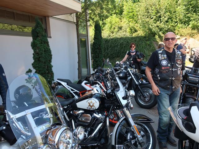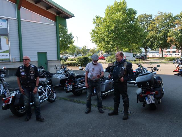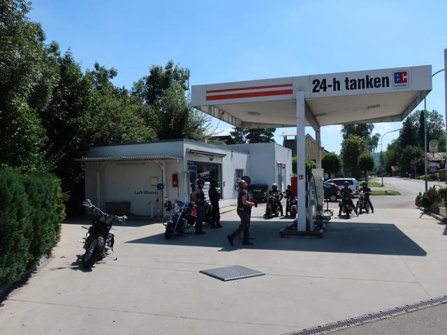 Beim Tanken merkte man, dass das Wetter Vollgas gab. Bei über 34 Grad kühlt auch der Fahrtwind nicht mehr. Aber Bine’s Mopped streikte bei diesen Temperaturen. Nach kurzem Demontieren, Rütteln und Schütteln an der Elektrik lief die Sportster jedoch ohne weitere Mucken wieder.