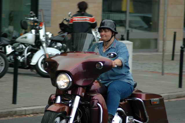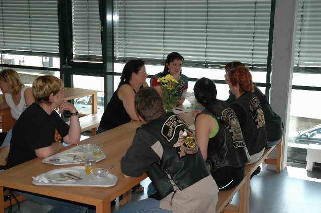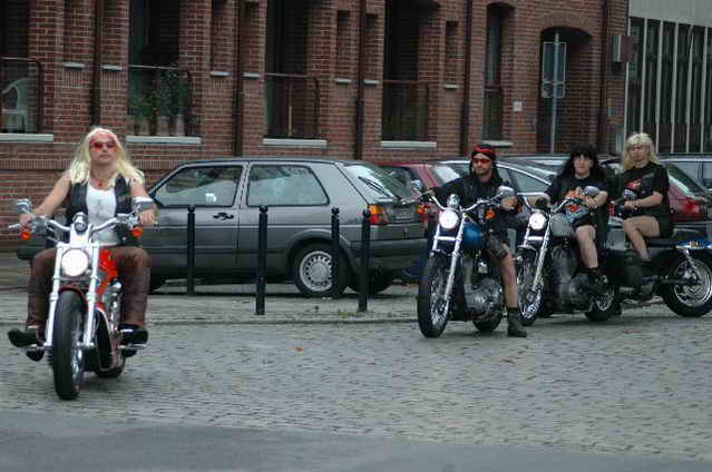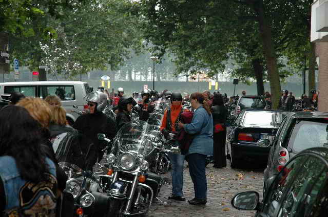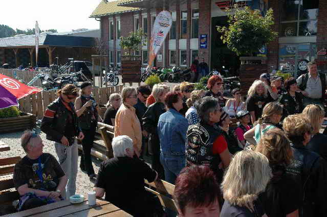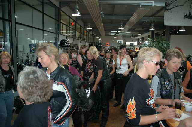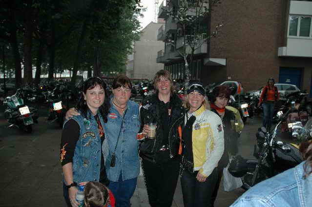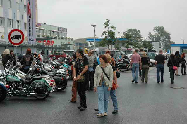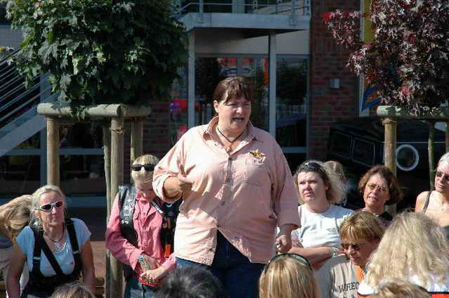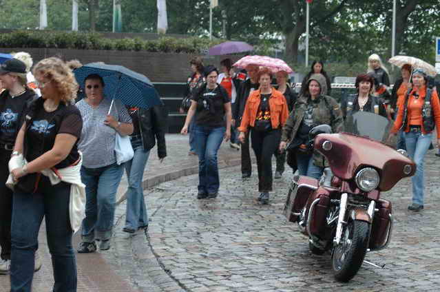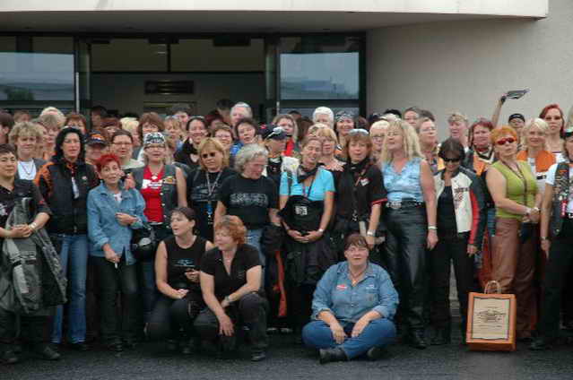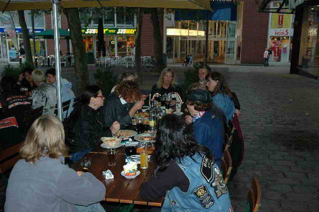 Habs fast vergessen, wir bekamen durch 5 adrette „Mädels“ vom „MC Mopped Stuttgart“ schwäbische Verstärkung. Wirklich sexy Girls, hatten nur etwas stramme und haarige Waden. Unter Polizeischutz ging’s dann zum Harley-Dealer, wo wir mit Cilli con Carne, Kaffee und Kuchen verwöhnt wurden. Die Eine oder Andere hat sich auch noch gleich neu eingekleidet, die Auswahl war riesengroß. Aufstellen zum Gruppenfoto. Der Rest des Tages war zur freien Verfügung, Helga und Dieter zeigten uns die Bremer Altstadt (Helga zeigte uns auch, in welchem Haus sie wohnte, als sie ihren Dieter kennen gelernt hatte).