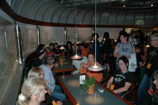 Nach großem Hallo, es waren doch schon einige Ladys da und ich bin fast ein wenig neidisch wenn ich sehe, dass manche Chapter mit 5, 10 od. gar 12 Ladys anreisen, haben wir unsere Zimmer bezogen, nur vom Feinsten. Wirklich alles neu, sauber, mit dem Blick auf die Weser und die Beck’s Brauerei. Nach dem Abendessen, es sei Kartoffelbrei mit Sauerkraut und Fleisch (bei uns heißen die Kartoffeln „Bratkartoffeln“) ging’s auf die „Schlachte“. Ich glaube, in Bremen sind die Wohnungen knapp.