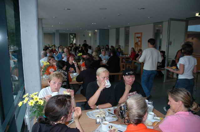 Auf der Kneipenmeile fast kein Durchkommen. Dann „Hallo“ und schon saßen wir bei den Kölnern Hanna und Eva. Annette von SKS war noch dabei und und und, man kann sich einfach nicht alle Namen merken. Nach einigen Beck’s, Radlern, Caipis, Wasser, Cola ging der erste Abend ruck zuck vorbei. Am Freitag fuhren wir nach dem Frühstück gemeinsam mit den Bikes zum Hansa-Container , wo uns Marys Arbeitgeber sehr herzlich empfangen hat. Danach gings gleich weiter in verschiedenen Gruppen zum Universum und anschließend nach Bremerhaven zum Fisch essen.