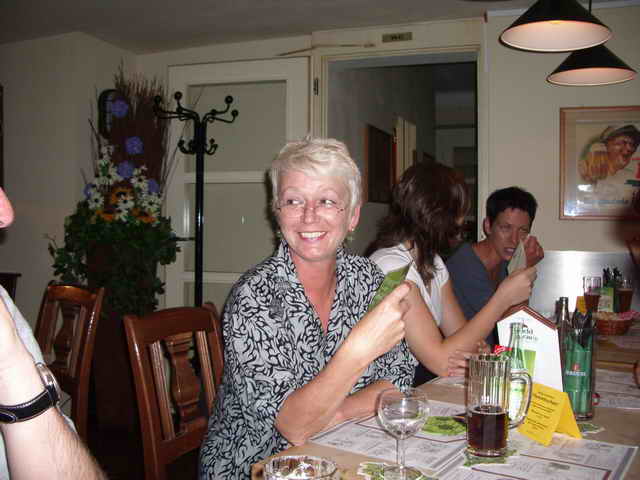 Im Hotel trafen wir eine nette Dame. Sie meinte, Ihr Mann fahre eine Harley, würde ab Montag beruflich in Stuttgart arbeiten und suche noch Anschluß. Wir haben die beiden spontan zu unserem Abendessen eingeladen um sich ein Bild von unserer tollen Truppe zu machen.