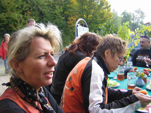 Großbottwar, Beilstein und Löwenstein: Wie schön kann Harleyfahren sein! Nun geht’s ans Essen und gegessen wird ohne Müh, aber nicht ohne Tee und Kraftbrüh. Nachdem von allen Bikern zwiebelähnliches Verhalten an den Tag gelegt wurde, war dann auch die Sonne überzeugt.