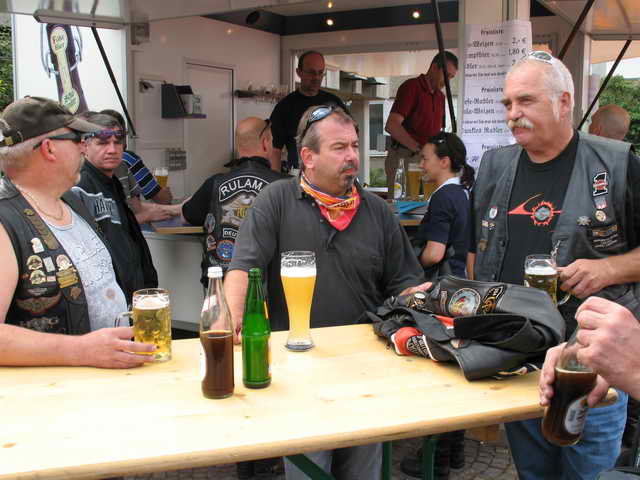 Nach einer Runde durch das ehemalige Baumwollspinnerei Gelände parkten wir direkt vor der Volksbank Filiale am Rathausplatz. Nachdem Chief Heinz mit gezückter Scheckkarte aus dem Vorraum der Bank fuhr, folgten wir einer Einladung durch den Vorstand zu einer gegenüber stattfindenden Hockete.
