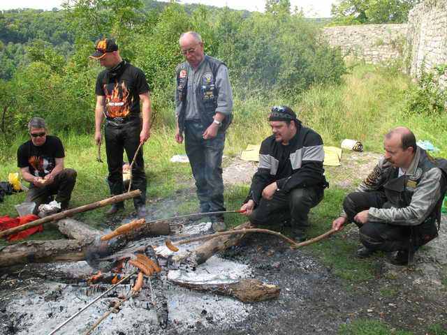 Nach einer ausgiebigen Grillmahlzeit schleppten wir uns mit vollem Tank,schweren Schuhen und leerer Blase zu unseren heiß-ersehnten Bikes.