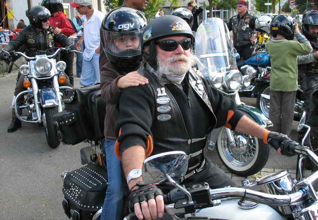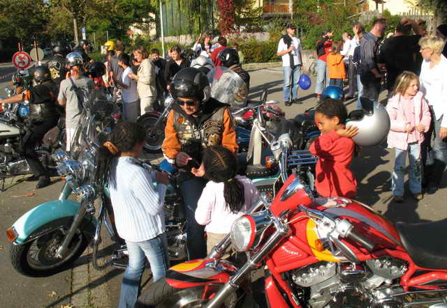 Der Part, den Rulaman dazu beiträgt, gewinnt Jahr für Jahr mehr Freunde und ist zwischenzeitlich zur Haupt-Attraktion geworden. Harley-Rundfahrten für Jung und Alt. Gegen einen Spendenbetrag in die Gemeindekasse, konnte man als Sozius mit routinierten Bikern und Bikerinnen eine Runde durch Tübingens Südstadt fahren.