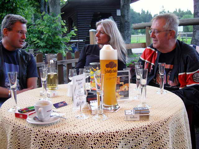 Gestärkt bretterten wir weiter auf der B19 bis Fambach. Dann über Landstrassen nach Trusetal und der Sonne entgegen zum „Kleinen Inselberg“. Auch Biker-innen müssen mal essen, trinken, trinken, trinken und schlafen. Der kleine Inselberg bietet hierzu angenehmes und Sehenswertes an.