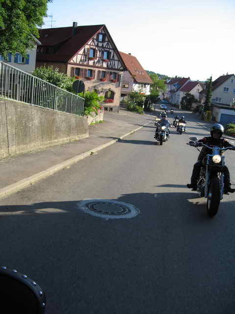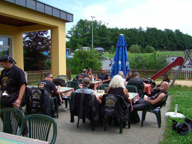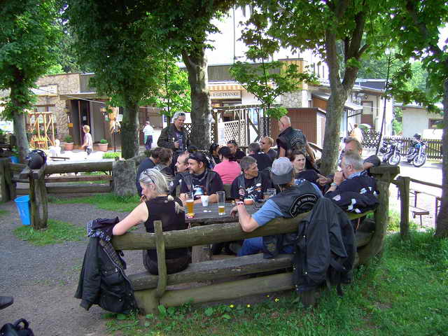 Gestärkt bretterten wir weiter auf der B19 bis Fambach. Dann über Landstrassen nach Trusetal und der Sonne entgegen zum „Kleinen Inselberg“. Auch Biker-innen müssen mal essen, trinken, trinken, trinken und schlafen. Der kleine Inselberg bietet hierzu angenehmes und Sehenswertes an.