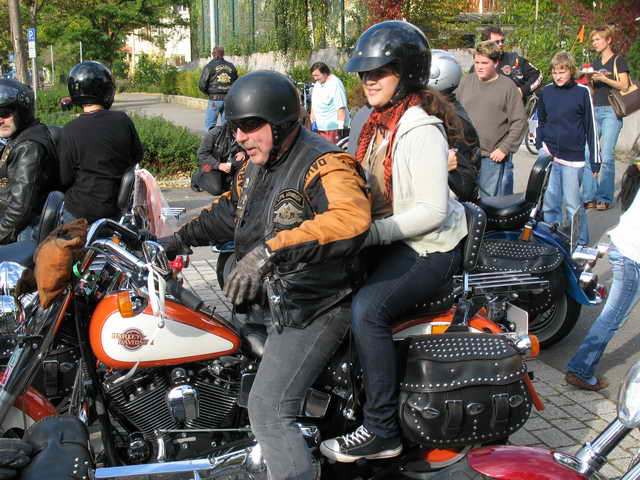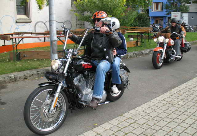 Der Part, den Rulaman dazu beiträgt, gewinnt Jahr für Jahr mehr Freunde und ist zwischenzeitlich zur Haupt-Attraktion geworden. Harley-Rundfahrten für Jung und Alt. Gegen einen Spendenbetrag in die Gemeindekasse, konnte man als Sozius mit routinierten Bikern und Bikerinnen eine Runde durch Tübingens Südstadt fahren.