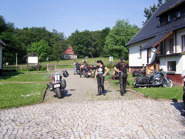 Gestärkt bretterten wir weiter auf der B19 bis Fambach. Dann über Landstrassen nach Trusetal und der Sonne entgegen zum „Kleinen Inselberg“. Auch Biker-innen müssen mal essen, trinken, trinken, trinken und schlafen. Der kleine Inselberg bietet hierzu angenehmes und Sehenswertes an.