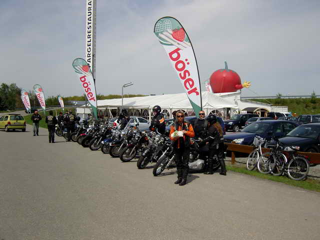 Sonntag, 01.06.2008 war es wieder mal soweit - LOH-Ausfahrt 2008.Um 10.30 Uhr trafen wir uns an der Shell-Tanke.Es war richtig was los auf dem Parkplatz. Das Wetter lud ja auch geradezu zum Motorradfahren ein.Unsere Gruppe umfasste 6 Mopeds, 8 Leute. Außer mir war noch Inge als Selbstfahrende Lady dabei und 2 Rulas haben ihre Ladys transportiert.