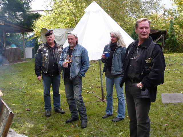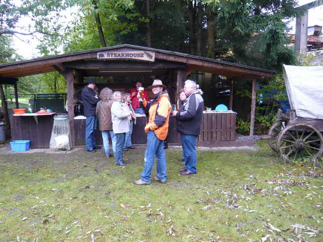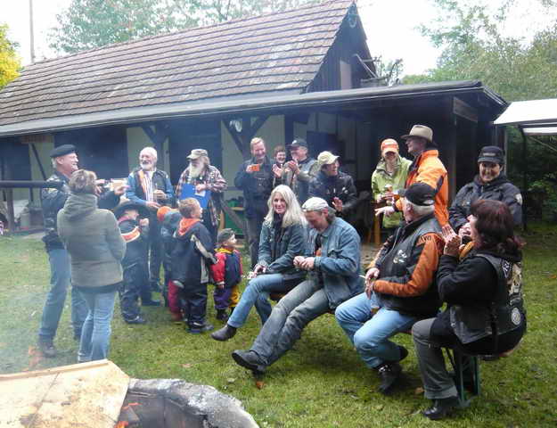 Also, wie immer am 3. Oktober trafen sich die Rulas zum alljährlichen Hufeisenweitwurf, so auch dieses Jahr. Das Wetter war so, dass ich beim Aufhängen der Vereinsfahne klatschnass geworden bin, aber 5 Minuten danach klärte es sich auf, das Lagerfeuer gab dank des verbrannten Mobiliars ordentlich warm und die Leute vom Country Club hatten außer Kaffee auch gleich einen Pott Glühwein bereit gestellt. Was nicht nur die gefühlte Temperatur, sondern auch die Stimmung anhob.