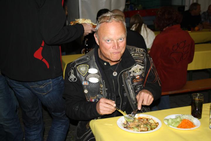Der Regen der Nacht hatte sich zumindest um Leonberg bereits verzogen und die Wetteraussichten für das Wochenende ließen hoffen. Bis Ludwigsburg Nord nutzten wir die A81 um anschließend fast bis zum Ziel der B27 zu folgen. Während für unsereins, die Geplagten des Großraumes Stuttgart, die Bundesstraße 27 im Odenwald zwischen Mosbach und Walldürn bereits eine Wohltat ist, ist dieselbige bei Hammelburg, Bad Brückenau eine Offenbarung. Gut ausgebaute Strassen die nicht nur gerade zum Horizont führen, kaum Verkehr am Freitagnachmittag, KM-langes fahren ohne Gegenverkehr durch Wälder und Wiesen erfreuen des Biker´s Herz. So kamen wir gutgelaunt nach einigen Zigarettenpäuschen in Gersfeld an. Axel und Roland gingen auf Zimmersuche, während Wolf seinen reservierten Zeltplatz aufsuchte um seine 1-Raum-Wohnung für die folgenden Nächte aufzuschlagen. Das Zelt stand noch nicht richtig, da donnerten die beiden Kollegen schon am Platz vorbei zur Wasserkuppe.