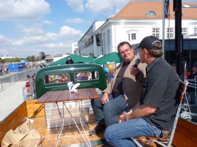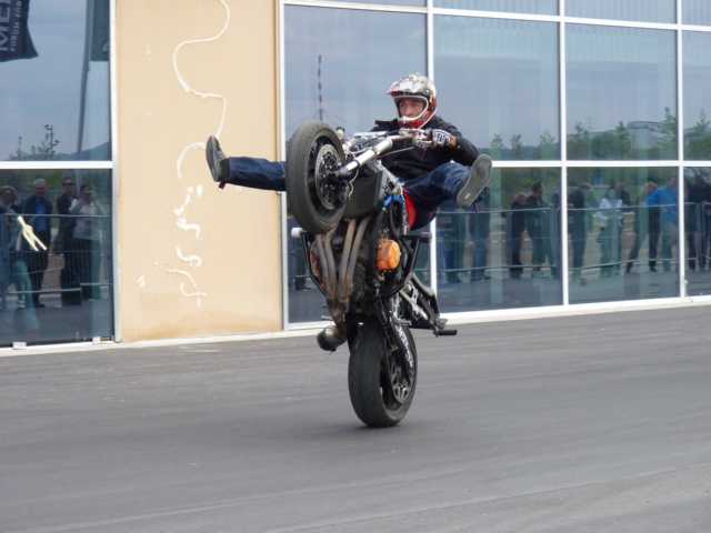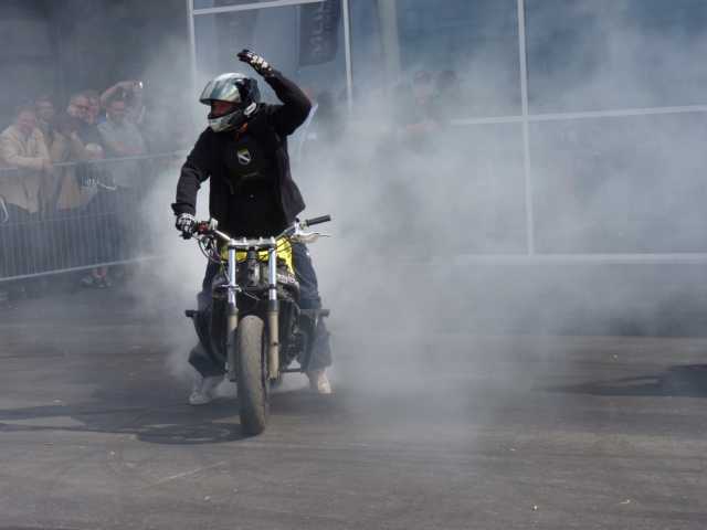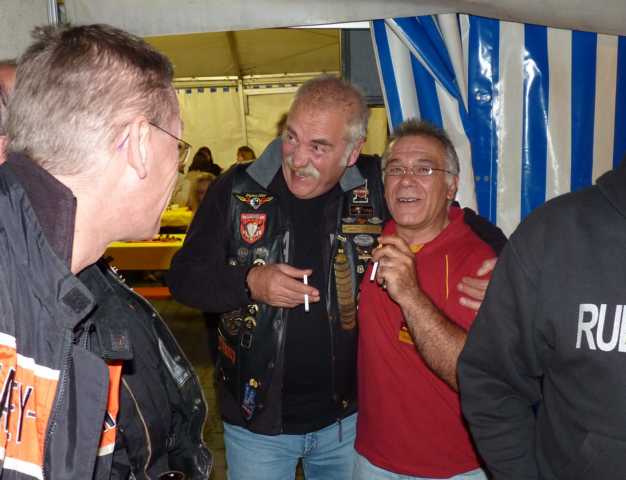 Der Regen der Nacht hatte sich zumindest um Leonberg bereits verzogen und die Wetteraussichten für das Wochenende ließen hoffen. Bis Ludwigsburg Nord nutzten wir die A81 um anschließend fast bis zum Ziel der B27 zu folgen. Während für unsereins, die Geplagten des Großraumes Stuttgart, die Bundesstraße 27 im Odenwald zwischen Mosbach und Walldürn bereits eine Wohltat ist, ist dieselbige bei Hammelburg, Bad Brückenau eine Offenbarung. Gut ausgebaute Strassen die nicht nur gerade zum Horizont führen, kaum Verkehr am Freitagnachmittag, KM-langes fahren ohne Gegenverkehr durch Wälder und Wiesen erfreuen des Biker´s Herz. So kamen wir gutgelaunt nach einigen Zigarettenpäuschen in Gersfeld an. Axel und Roland gingen auf Zimmersuche, während Wolf seinen reservierten Zeltplatz aufsuchte um seine 1-Raum-Wohnung für die folgenden Nächte aufzuschlagen. Das Zelt stand noch nicht richtig, da donnerten die beiden Kollegen schon am Platz vorbei zur Wasserkuppe.
