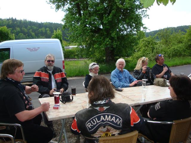 Um 10.00 trafen wir uns mit unseren Gästen aus dem Norden und Süden an der Esso-Tankstelle in Nürtingen. Wolf, unser Roadcaptain, hatte eine Tour herausgesucht, die uns über Göppingen, Schwäbisch Gmünd zum Ebnisee und wieder zurück führte. Aufgrund der Erfahrungen der letzten Jahre waren die Pausen gut geplant. Die Herausforderungen bezüglich der Kilometer hielten sich in Grenzen.
