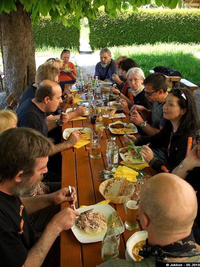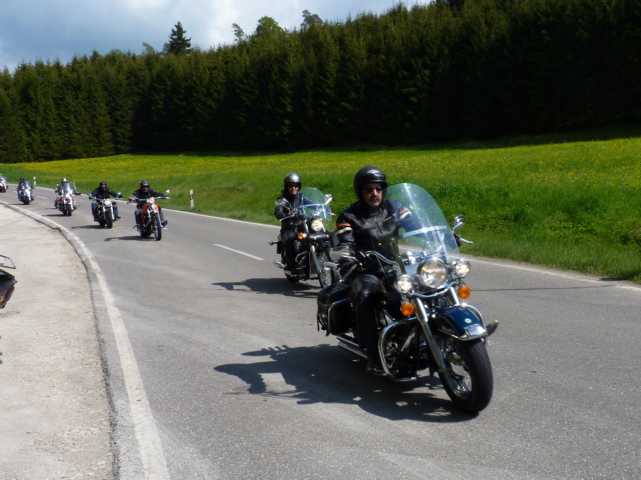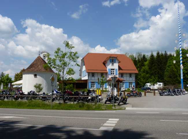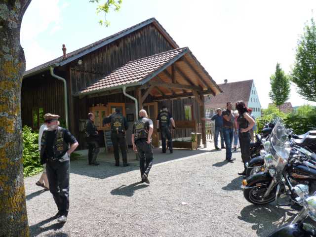 Wellness auf 2 Rädern war das vom Roadcaptain ausgegebene Motto zur Pfingstsonntags-Tour. Und alles passte heute zusammen. Knapp 30 Gäste und Mitglieder trafen sich pünktlich am Startpunkt Südbahnhof. Ziel war das von Moor und Ried geprägte Oberschwaben mit den Kurorten wieBad Buchau, Bad Schussenried, Bad Waldsee und Bad Saulgau. Das Museumsdorf Kürnbach war nach einer kurzen Kaffee-Pause in Riedlingen die erste Station. Hier scheint die Zeit stehen geblieben zu sein. Besser als in jeder Filmkulisse wird einem hier der dörfliche Alltag der letzten 2 Jahrhunderte nähergebracht. Relaxed ging es weiter zum Hofgut Elchenreute mit seinem herrlich bayrischen Biergarten.